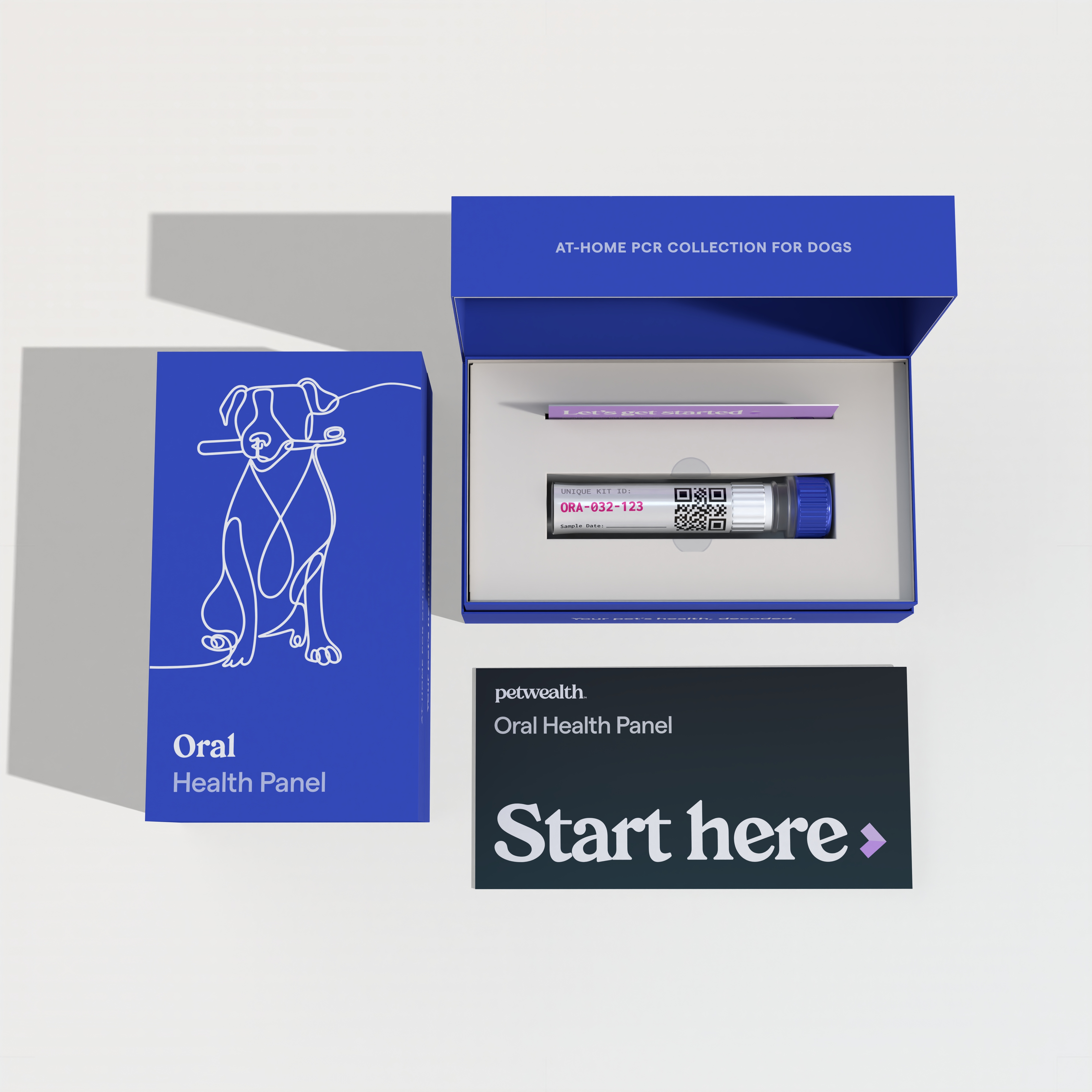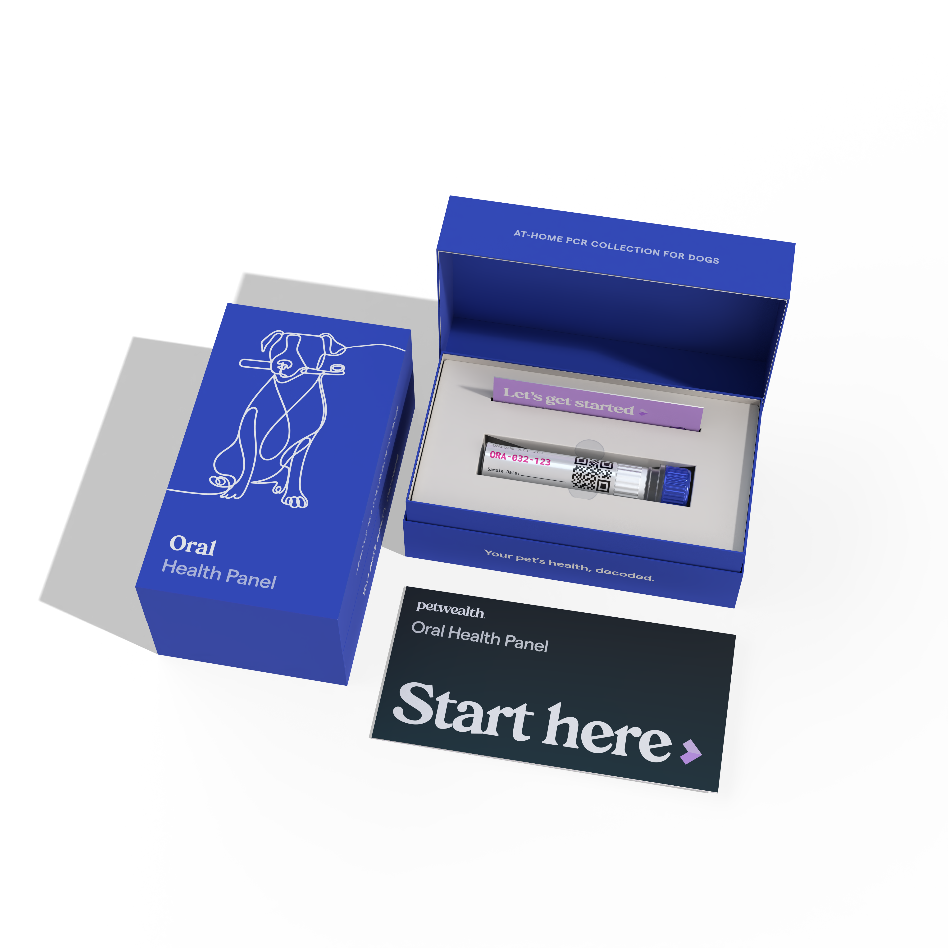 A gentle oral, fecal, or respiratory swab — takes under two minutes. No needles, no stress, no car rides.