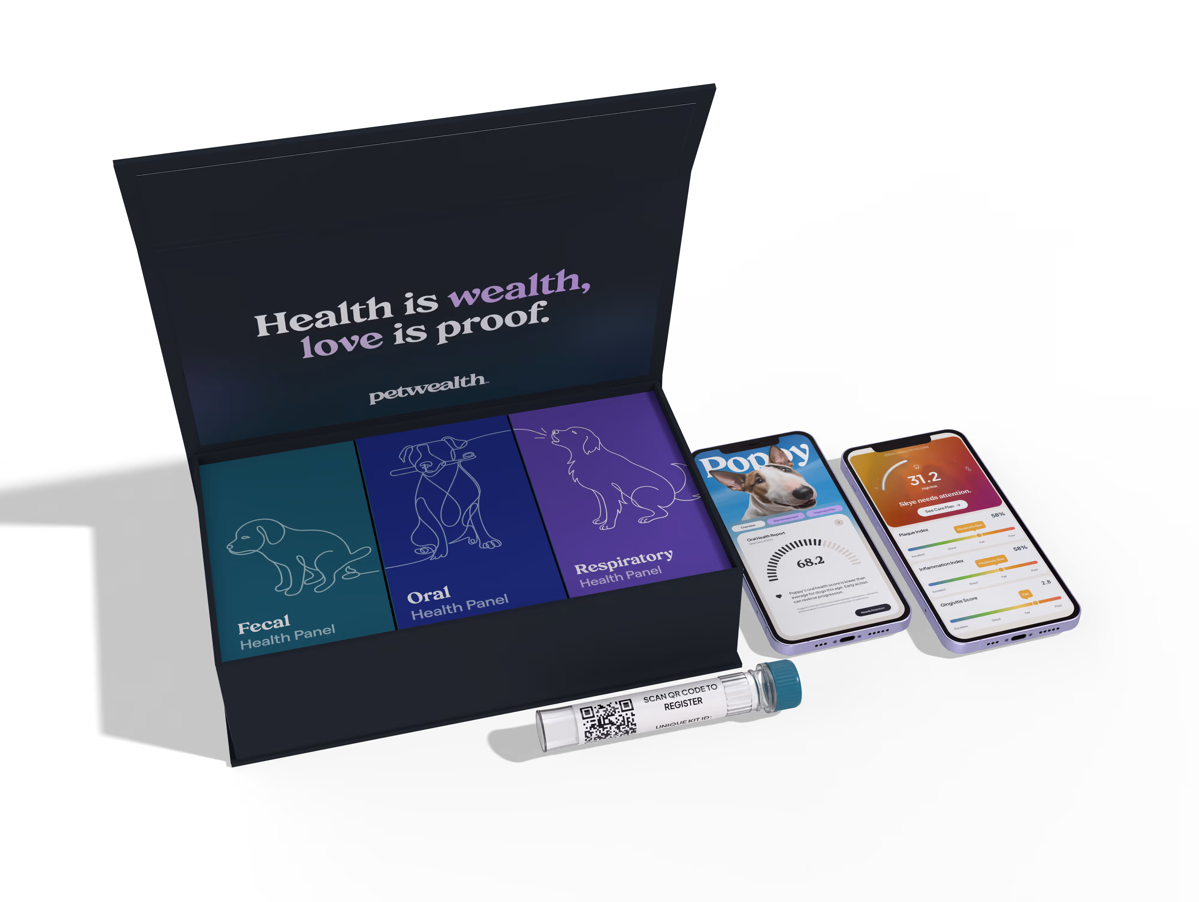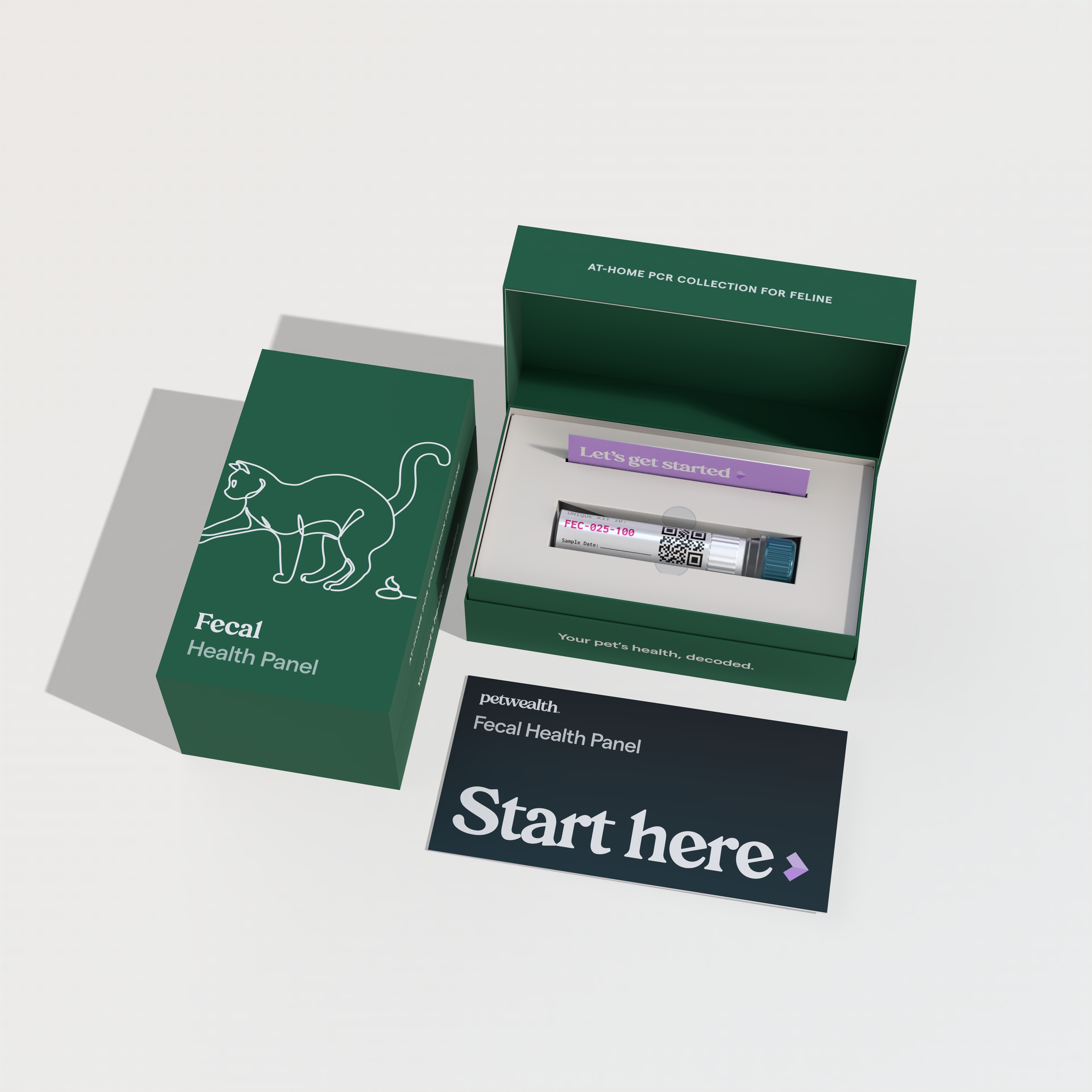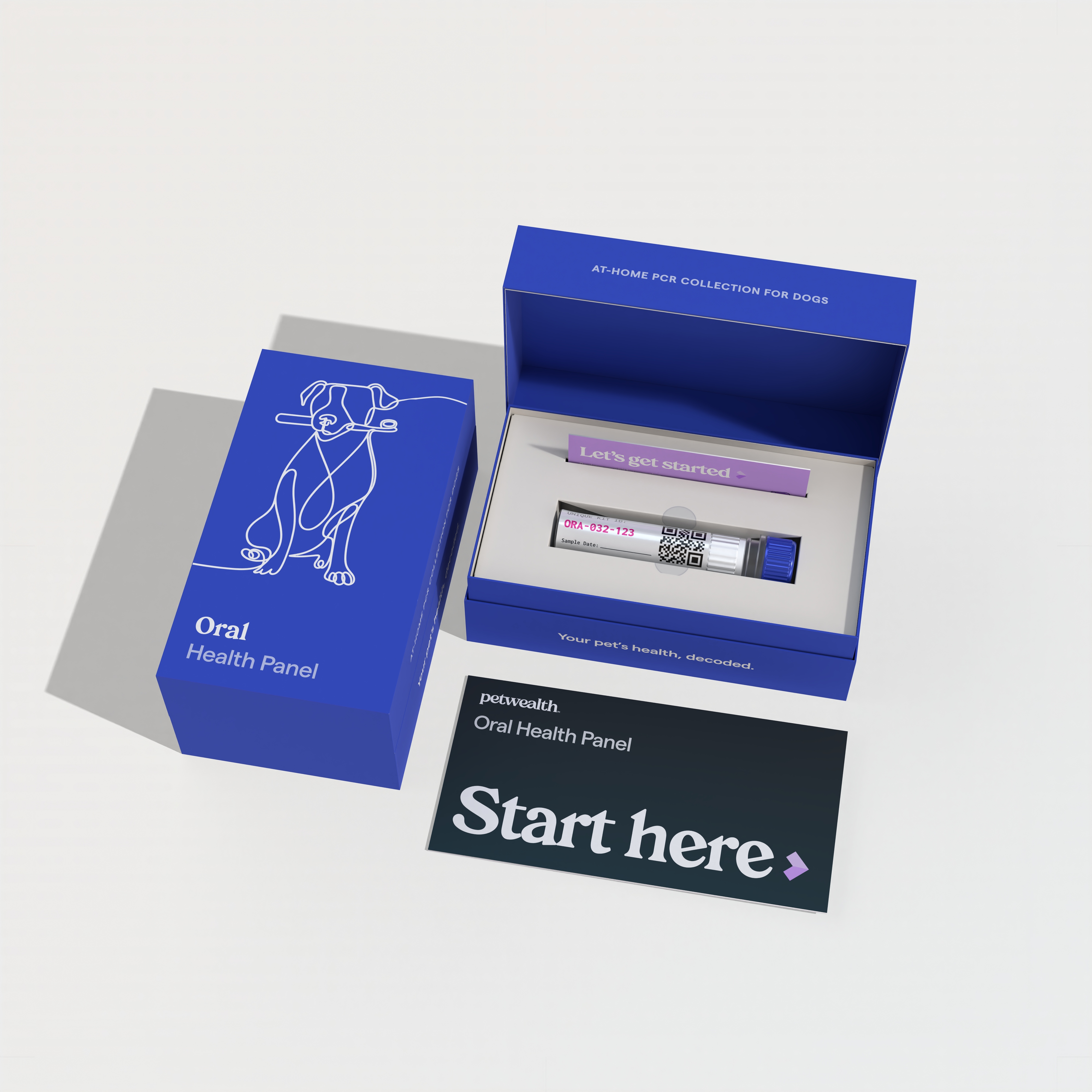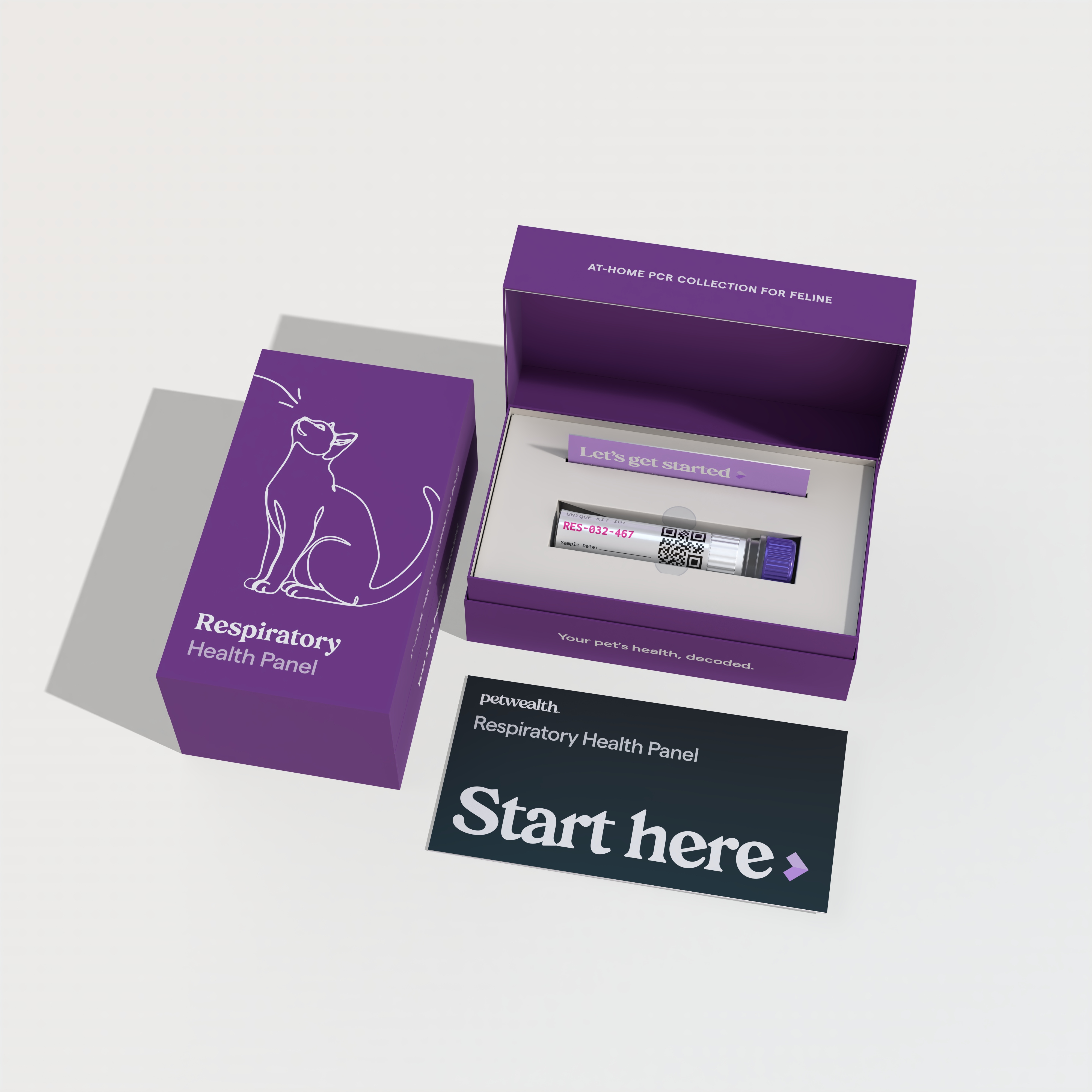 A gentle oral, fecal, or respiratory swab — takes under two minutes. No needles, no stress, no car rides.